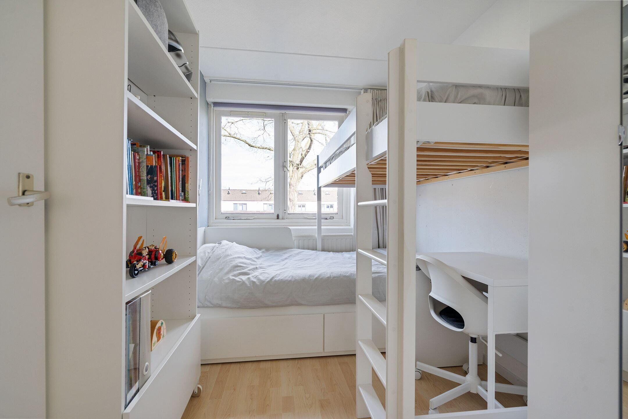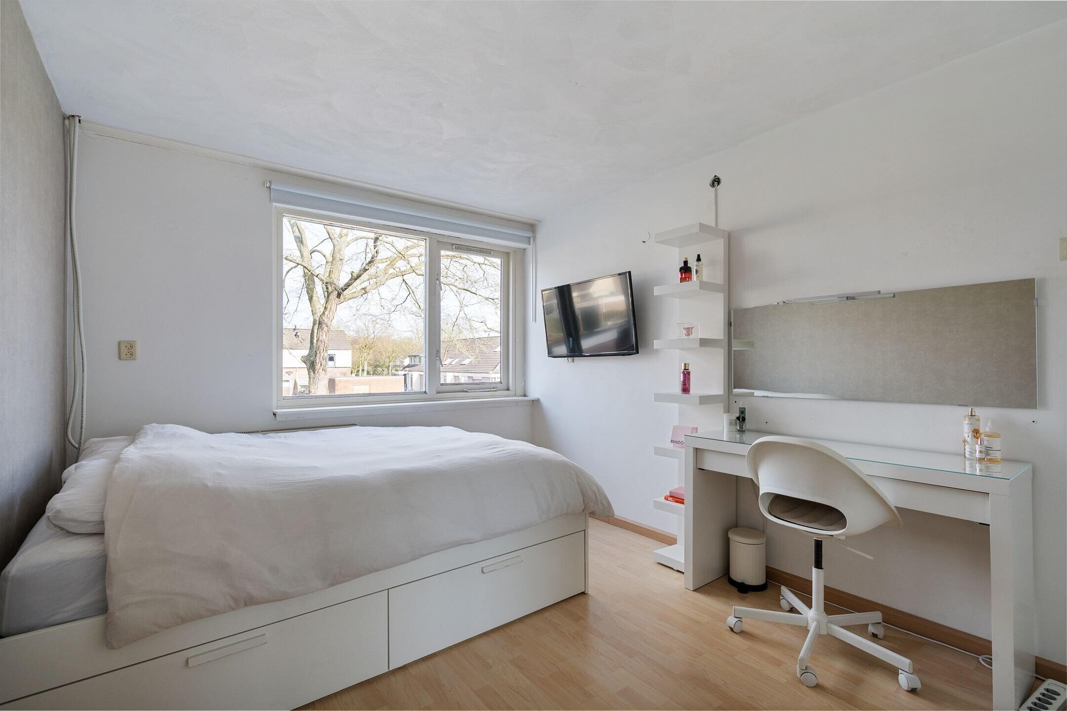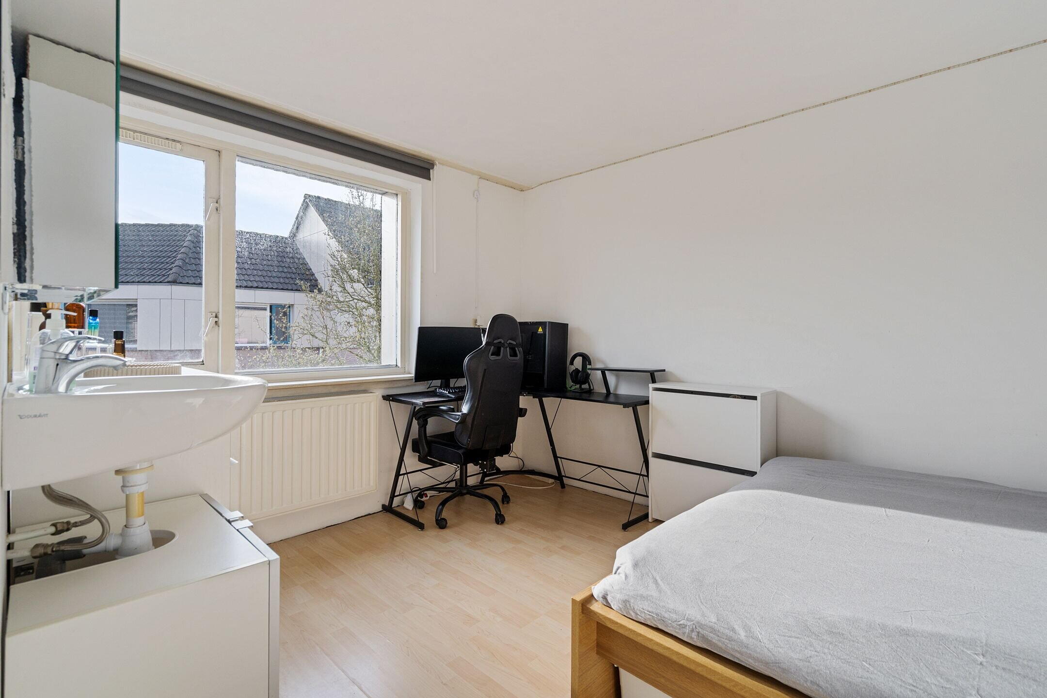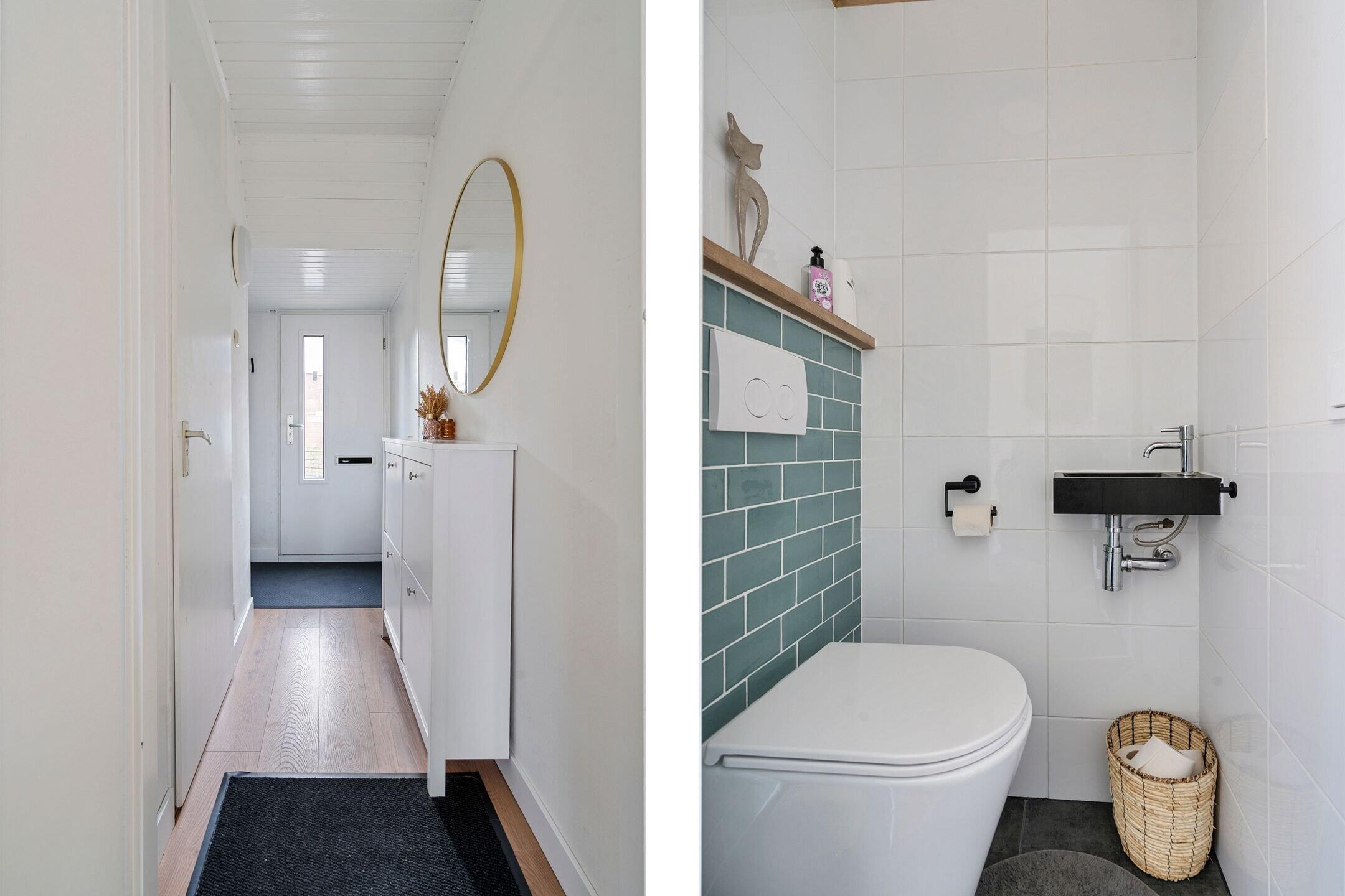 Overloop met toegang tot drie volwaardige slaapkamers, ideaal voor een gezin, thuiswerken of hobbyruimte. De recent vernieuwde badkamer (2024) straalt luxe en comfort uit en is voorzien van een dubbele wastafel, een moderne douche en een hangend toilet. Een stijlvolle en rustige plek om de dag te beginnen of juist ontspannen af te sluiten.