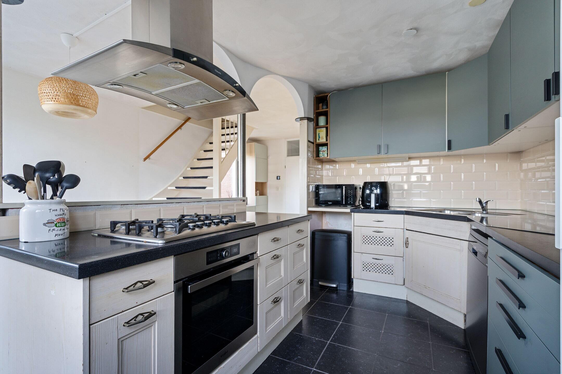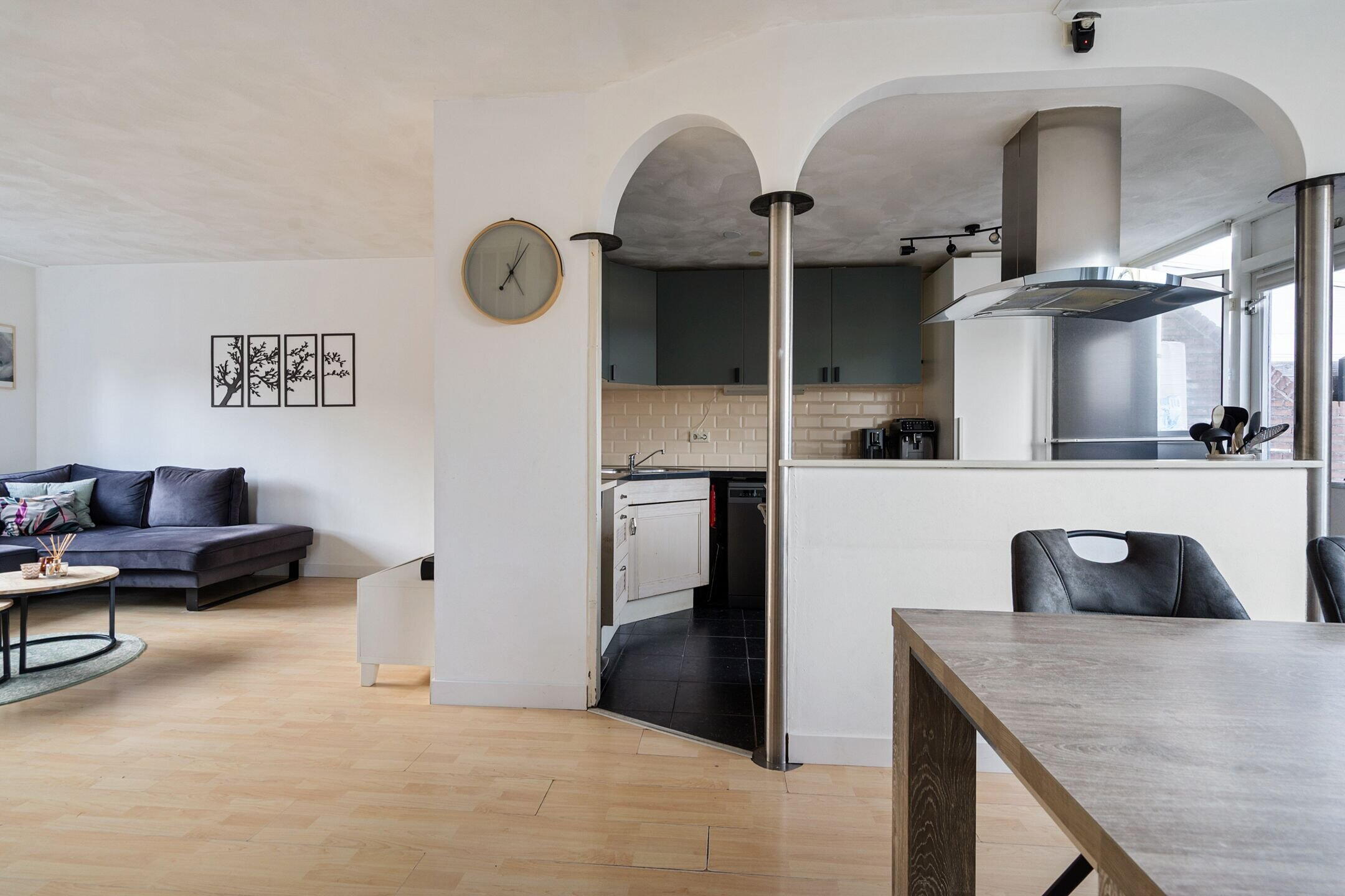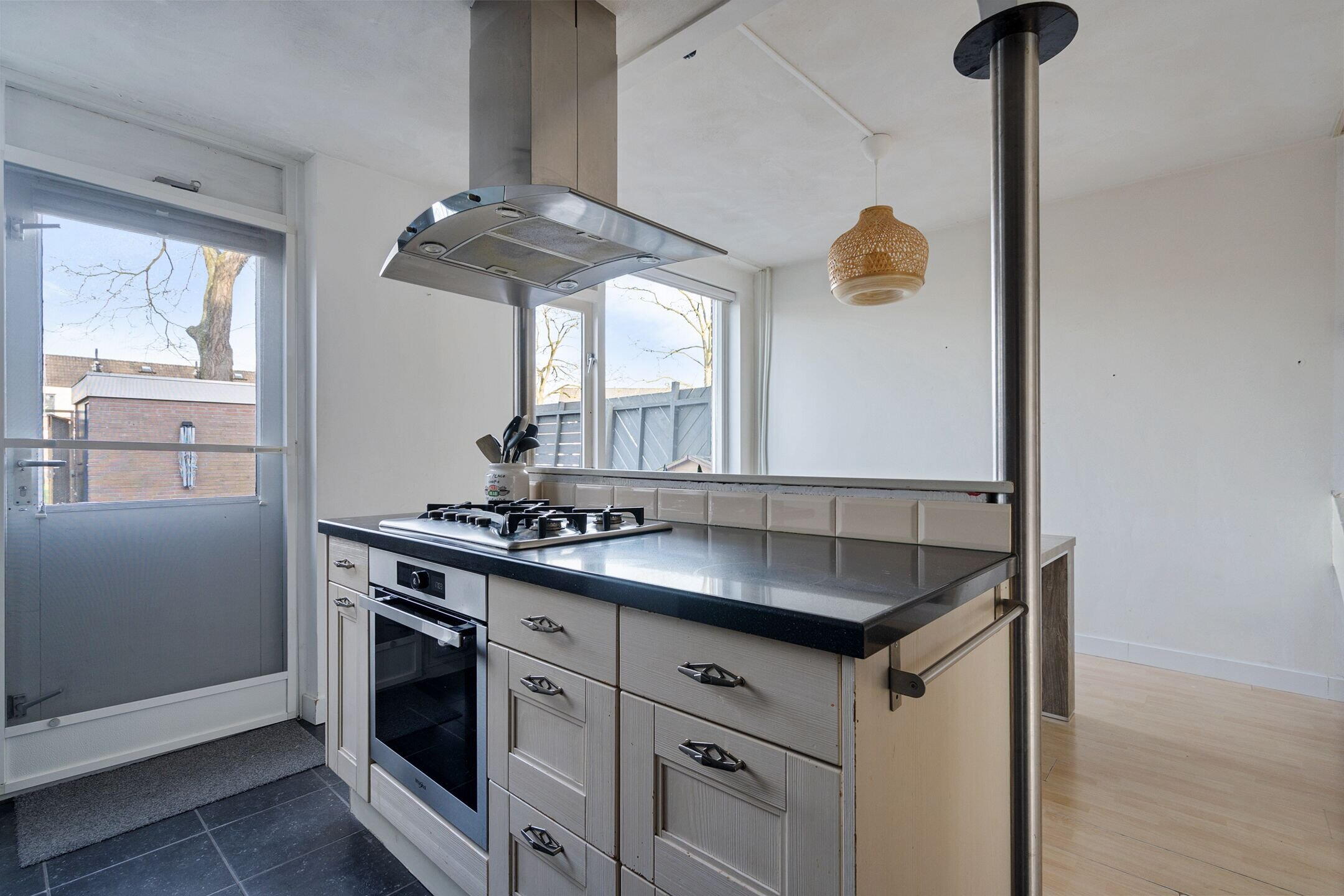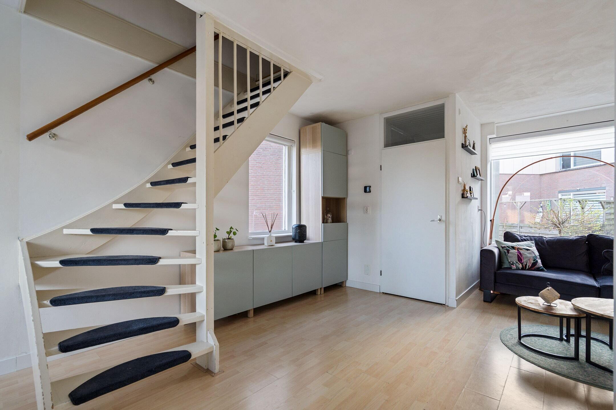 Bij binnenkomst word je direct verwelkomd in een lichte en verzorgde leefruimte. De woonkamer is ruim opgezet en biedt dankzij de grote raampartijen een prettige hoeveelheid daglicht. Aan de achterzijde bevindt zich een lichte keuken en een fijne plek vormt voor kookliefhebbers. De praktische indeling zorgt voor een mooie balans tussen koken, tafelen en ontspannen.